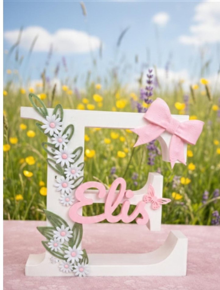 Pembe pastel renkte, çiçek desenleri ve fiyonk süslemeli Elis isimli dekoratif figür.