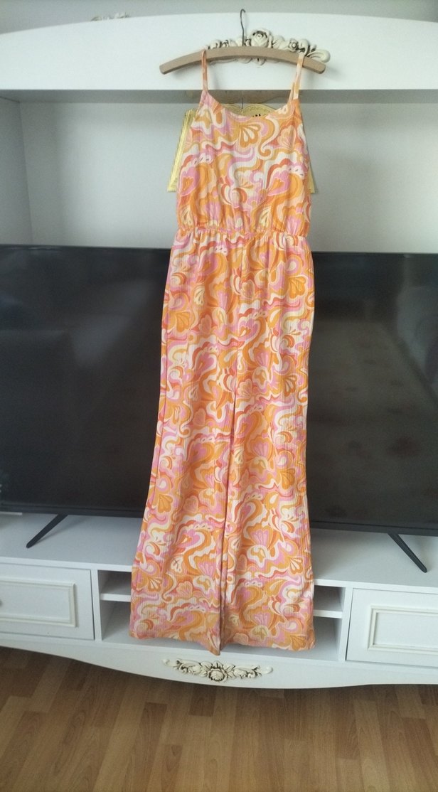 boy 1.35 beli: lastiği esnetince 45cm. esnemeden 30cm.turuncu canlı bı tulum. kızım a severek aldik eve geldik beğenmedi. etiketini koparmış bulunduk ama yepyeni. koton marka. yeni sezon. arkası çapraz askili İpek gibi kumaştan, askısız ve kolsuz, bol kesim, drapeli pembe pastel tie-dye desenli uzun bohem tulum. Parti için uygun.