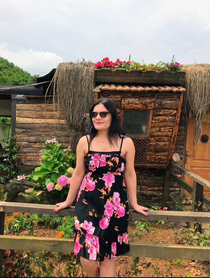 Pembe pastel tonlarında bağlama desenli, askılı, bol kesim midi elbise. Yumuşak sentetik kumaştan, drapeli detaylı, dış mekan kullanımı için uygun.