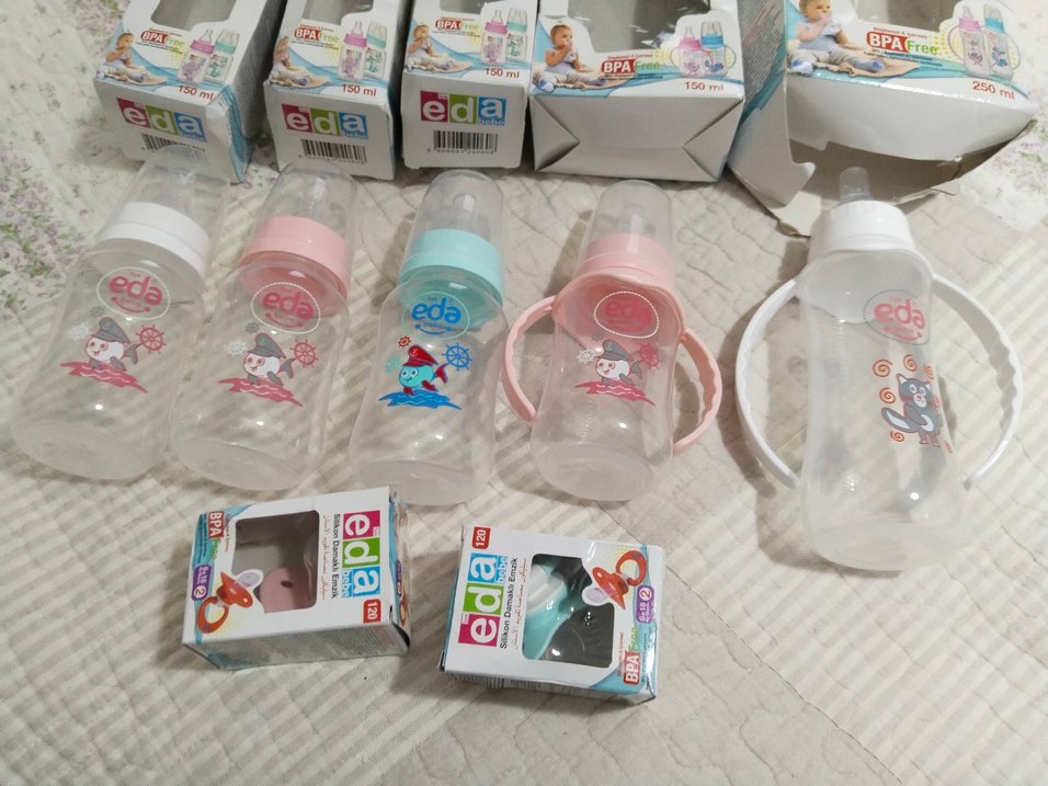 Pastel pembe renkte Eda bebek biberonu, BPA içermez ve 150 ml hacmindedir. Kolay tutulabilen sapları ve eğlenceli desenleri vardır. toplu satıştadır tek fiyat burda gördüğünüz herşey beyaz olan cif taraflı tutmalı satıldı