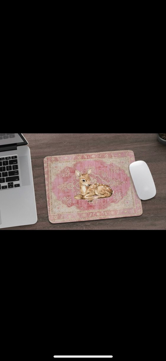 Kişiye Özel Aesthetic Mouse Pad Pinterest Aesthetic | Tatlı Tasarım | Özel Baskı Çalışma masanıza şıklık ve sevimlilik katacak bu aesthetic mouse pad, hem dekoratif hem de kullanışlı bir üründür. Pinterest aesthetic tarzdan ilham alan tasarımıyla masa düzeninizi bambaşka bir havaya sokar ✨ Ürün Özellikleri: • Ölçü: 19 x 24 cm • Kalınlık: 3 mm • Kaymaz taban • Canlı ve kaliteli baskı • Günlük kullanıma uygun, rahat mouse hareketi Kişiye Özel Baskı Seçeneği Dilerseniz bu tasarım yerine istediğiniz başka bir fotoğrafı, çizimi veya görseli de mouse pad üzerine basabiliyorum. – Kendi fotoğrafınız – Evcil hayvanınız – Pinterest aesthetic görseller – Minimal, cute, soft, vintage tarzlar Hediye için de harika bir seçenek! Doğum günü, masa başı çalışanlar, öğrenci hediyesi veya kendinizi şımartmak için ideal Orta kısmında bir geyik illüstrasyonu bulunan pembe pastel renkli, yumuşak ve pürüzsüz yüzeyli mouse pad.