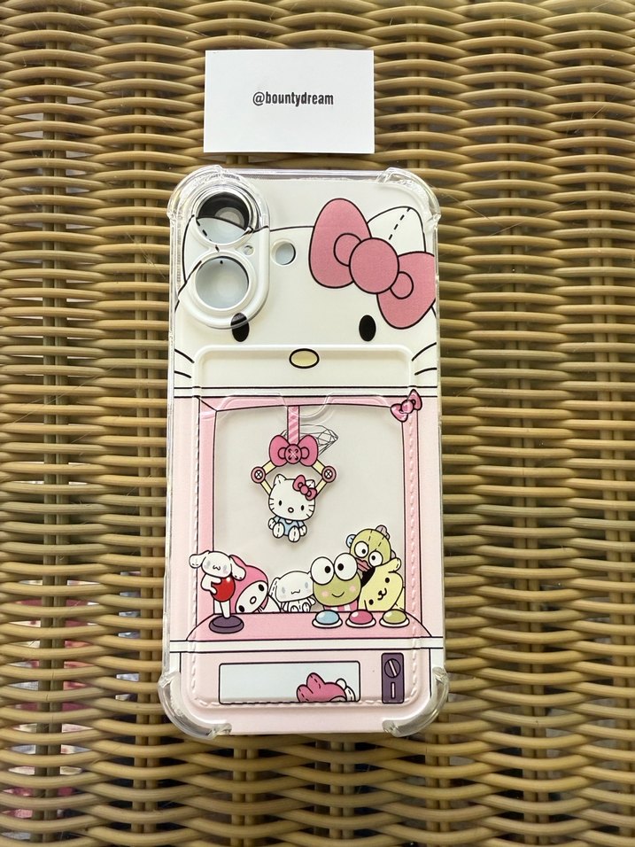 Pembe Pastel Hello Kitty kart tutucu İPhone 16 Telefon Kılıfı