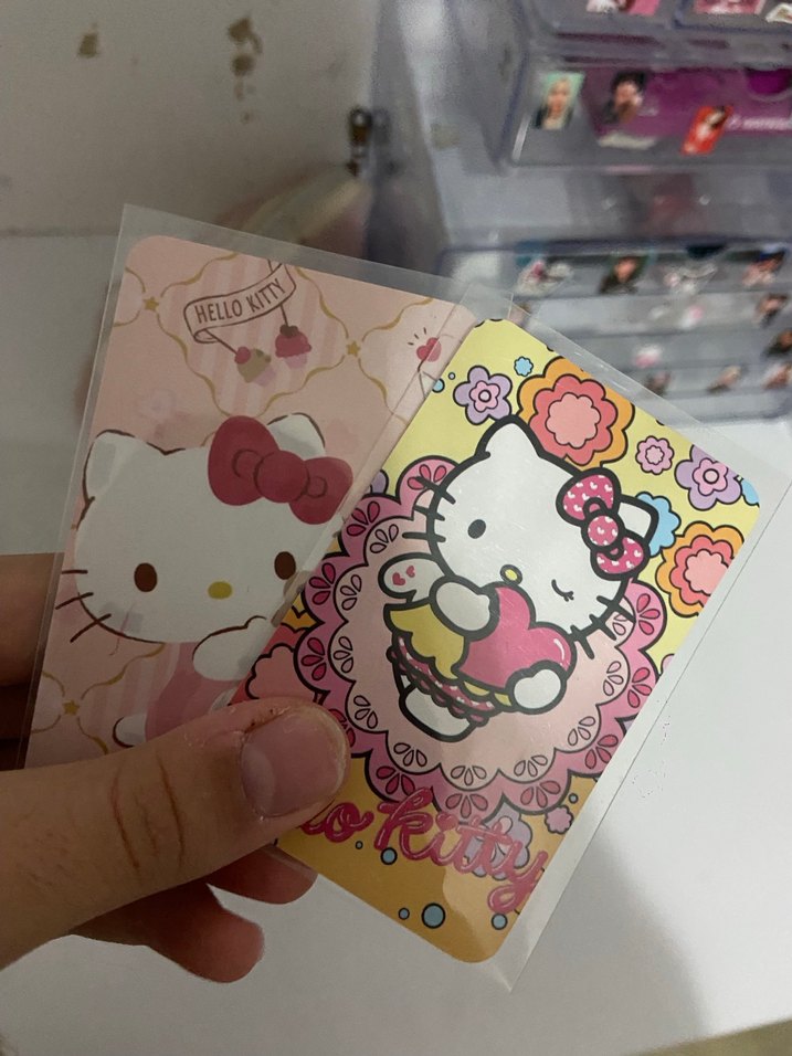 Pastel pembemsi Hello Kitty not defteri, üzerine 'HELLO' yazısı ve sevimli çizimlerle süslenmiştir.