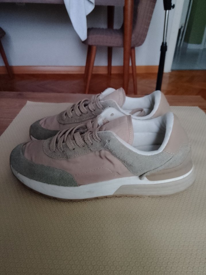 Pastel pembe tonlarda, kadın spor ayakkabısı. Rahatlık sağlayan kauçuk tabanlı, sokak modasına uygun günlük kullanım için, defo yırtılma vs söz konusu değil cok az kullanıldı alana hayırlı olsun