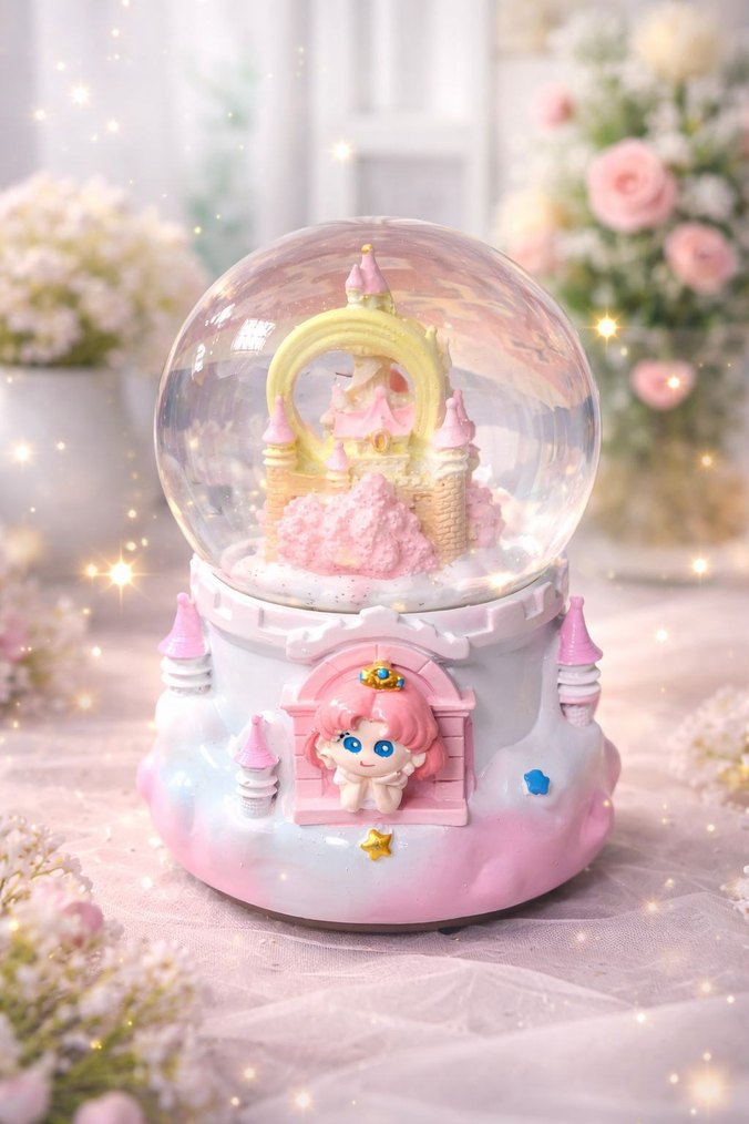 İçinde kale ve tabanda sevimli bir figür bulunan pembe pastel kar küresi. Büyülü ve masalsı bir hava yaratır. ❄️ Sevdiklerinize masalsı ve anlamlı bir hediye Prenses temalı bu şık kar küresi, zarif tasarımı ve pastel renkleriyle çocuk odaları, hediye köşeleri ve dekorasyon için idealdir. ✨ Ürün Özellikleri: • Prenses & şato figürlü tasarım • Sallandığında kar efekti • Müzikli ve dekoratif • Kaliteli, sağlam malzeme • Masa, raf ve komodin için uygun Kullanım Alanları: • Doğum günü hediyesi • Çocuk odası dekoru • Sevgiliye / özel gün hediyesi