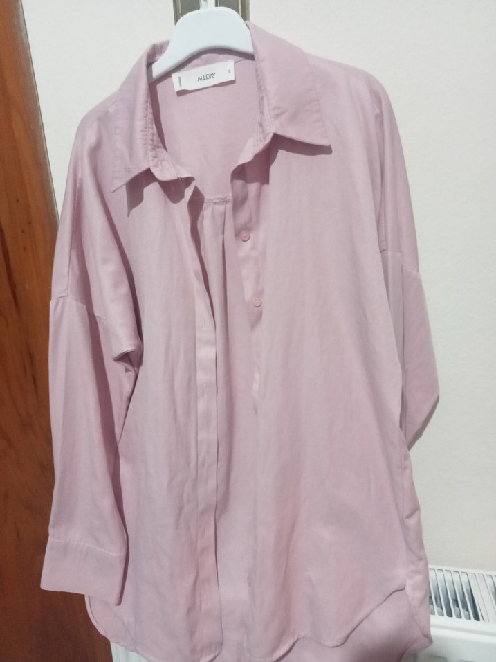 Annem yeni almış kullanmıyor Pembe pastel keten gömlek, düğmeli, salaş kesimdir. Midi boyda, uzun kollu ve yakalıdır. Minimalist ve normcore tarzda, günlük kullanıma uygundur.