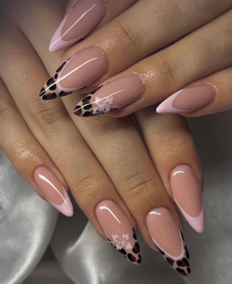 Pembe Pastel Leopar Detaylı jel takma tırnak