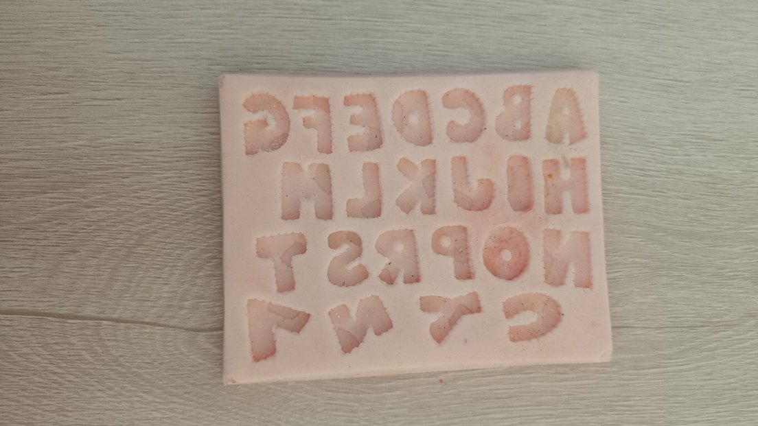 Pembe pastel renkte, çocuklar için alfabeyi öğrenmeye yönelik harfli puzzle. Yumuşak malzemesiyle güvenlidir. sorunsuz kalıp