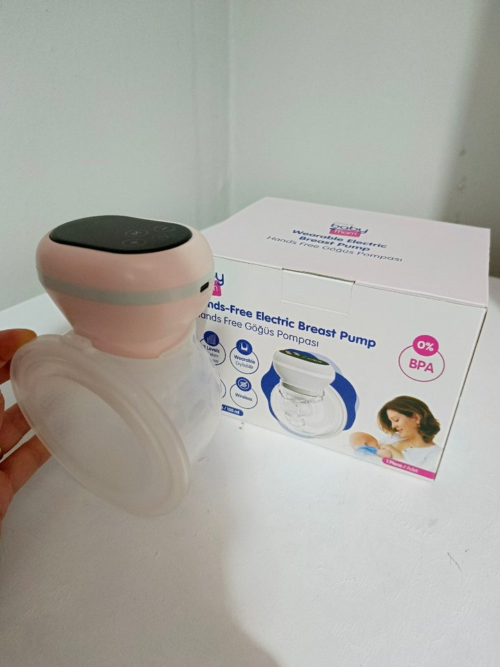 Pastel pembe renkli elektrikli göğüs pompası, eller serbest kullanım ve BPA içermeyen güvenli malzeme sunar. Rahat ve etkili kullanım sağlar. temiz sağlamdır kutusuyla göndericem