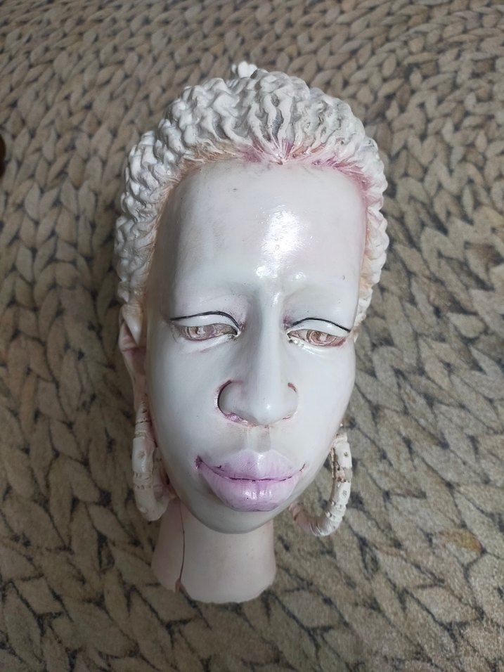 Pastel pembe tonlarda detaylı yüz hatları ve büyük halka küpelerle süslenmiş heykelciktir. Dokulu saç tasarımı ve pürüzsüz yüzeye sahiptir.