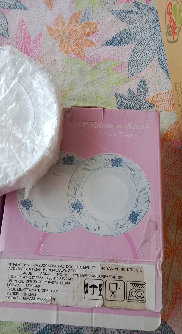 Pastel pembe renkte, mavi çiçek desenli opal cam tabak. Dayanıklı ve günlük kullanım için uygundur. ️12 adet 6 da verilir sitedeki 12 adetin fyt