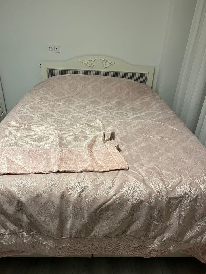 Yumuşak pastel pembe renkte, zarif dokulu yatak örtüsü. Her yatak odasına yumuşak bir dokunuş katıyor. ️