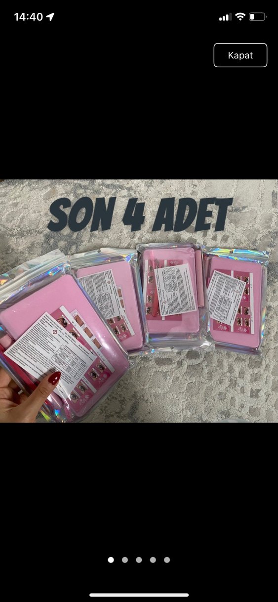 Holografik ambalajda 4 adet pastel pembe takma kirpik seti. Her pakette birden fazla çift kirpik bulunur. ✨
