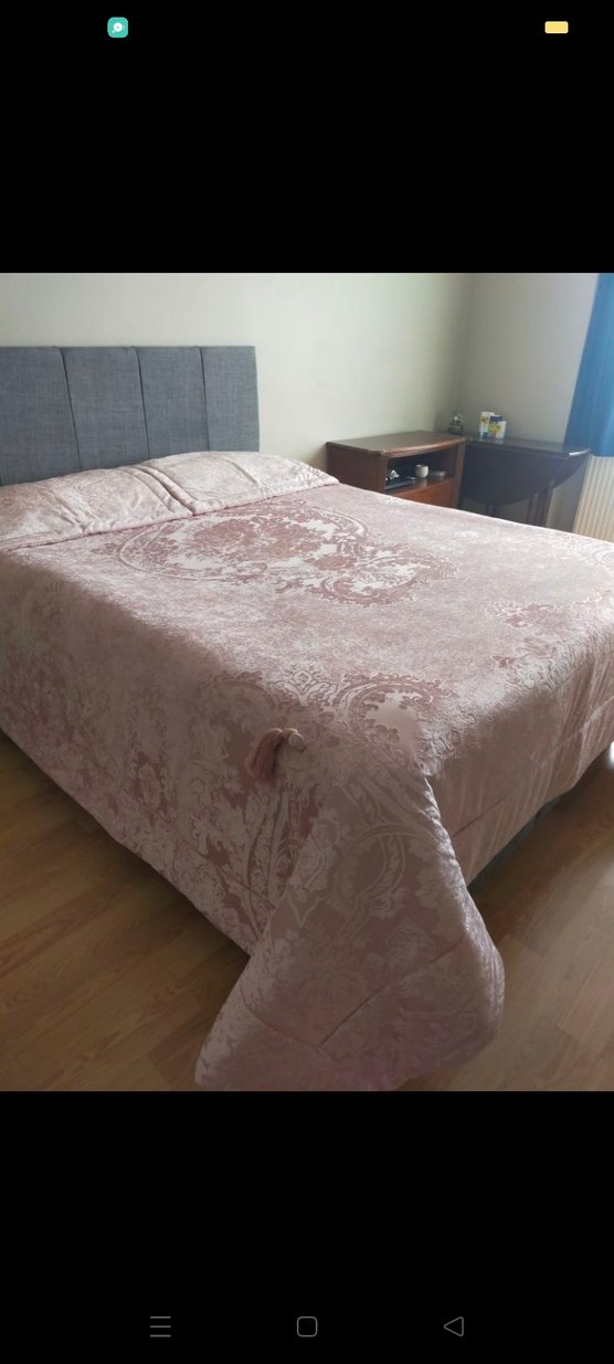 Pembe pastel tonlarda batik desenli, zarif dokulu bir yatak örtüsüdür, yatak odanıza hafif bir şıklık katar. ️ Karaca home valeria seri. İki uc kere serdim . yatağıma büyük geldiği için kullanamıyorum. Bu yatağa serdim göstermek için benim yatağım daha ufak