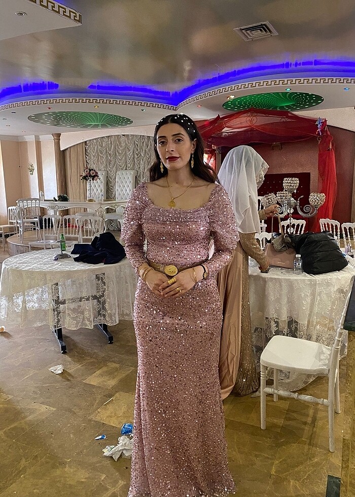 Pembe payetli abiye elbise