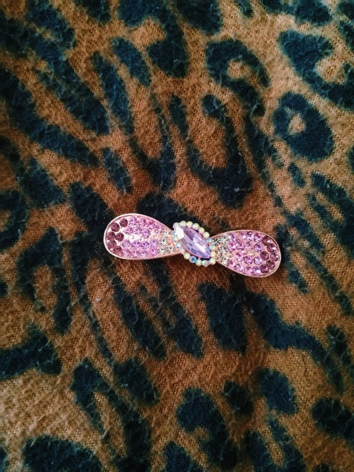Pembe payetlerle süslenmiş, sentetik kumaştan yapılmış, vintage bohem tarzında renkli saç tokası. Retro ve hippie havası katar.