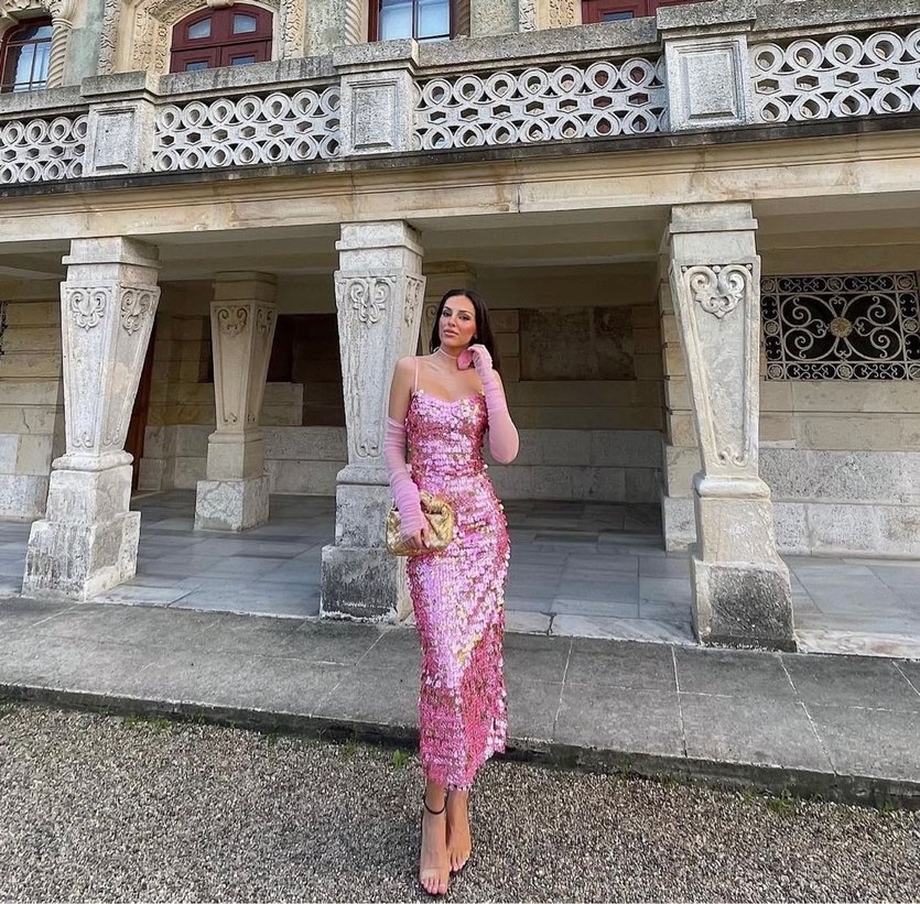 Pembe payetli elbise