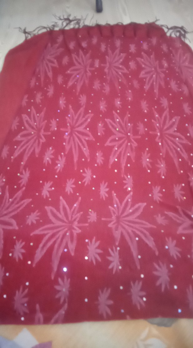 Pembe renkli, sentetik kumaştan yapılmış, payetli ve çiçek desenli kadın fularıdır. hiç kullanılmamış✨