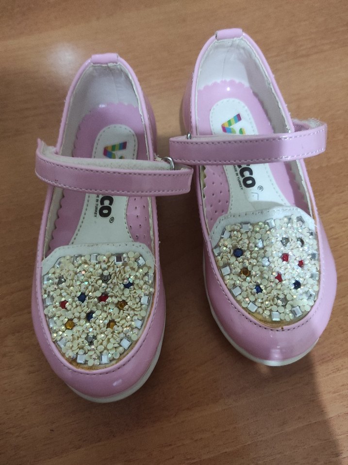 Pembe renkli, payet işlemeli ve klasik bant detaylı kız çocuk babet ayakkabısı, renkli ve şık tasarıma sahiptir.
