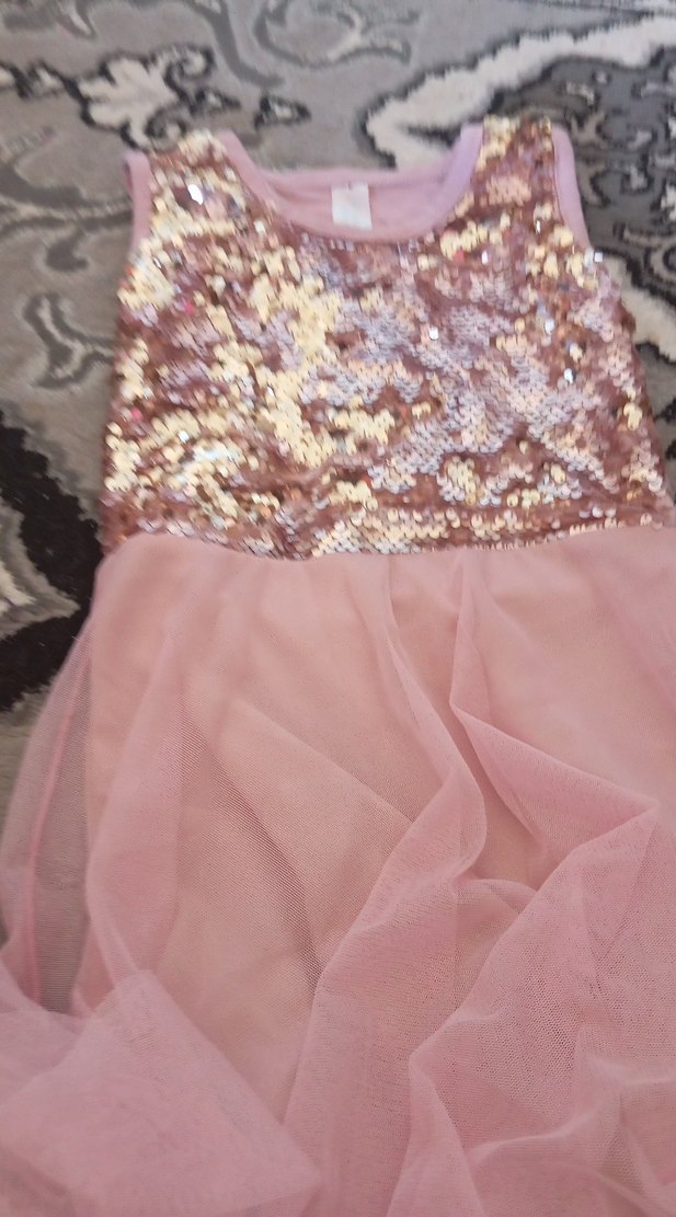 Pembe renkli, payet işlemeli, kolsuz ve straplez yakalı kız çocuk elbisesi. Bohem tarzda, ince kesimli ve yumuşak dokulu etek kısmı bulunur. ✨