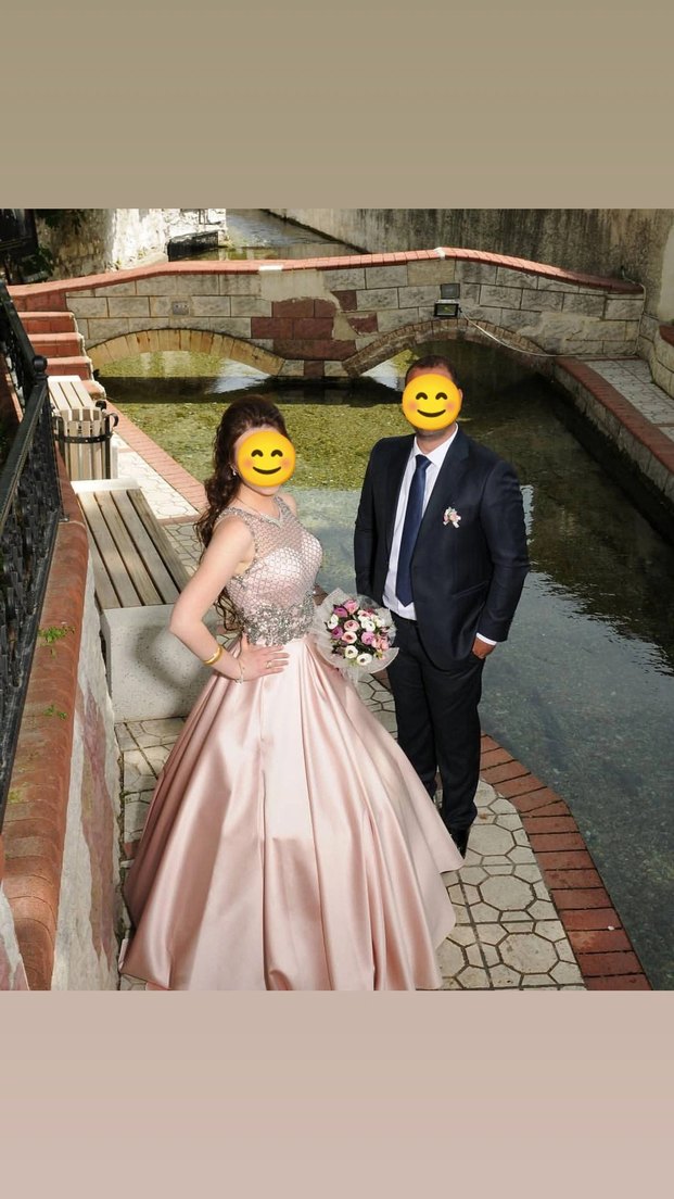Pembe parlak renkli, payetli ve baskılı detaylara sahip uzun abiye elbise. Notlu yaka ve askılı kollu, modern klasik tarzda ve düzenli kesimlidir, 36 beden uyumlu, 1 defa kullanıldı, alt üst ayrı 2 parça olarak, kuru temizleme yapıldı.