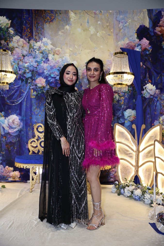 Payetli, pembe uzun elbise; uzun kollu, straplez yakalı ve bohem etnik desenli, vücuda oturan tasarım.göbekten hafif açık 3 saat gıydım ve 1 kere gıydim