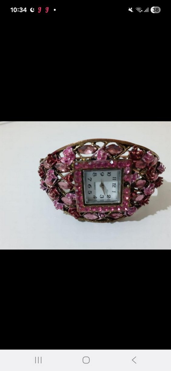 Bu bohem tarzı kadın kol saati, renkli pembe tasarımı ve payetli detaylarıyla vintage bir görünüm sunar. Kare kadranı pembe taşlar çevreler, retro hippie havası verir. ⌚