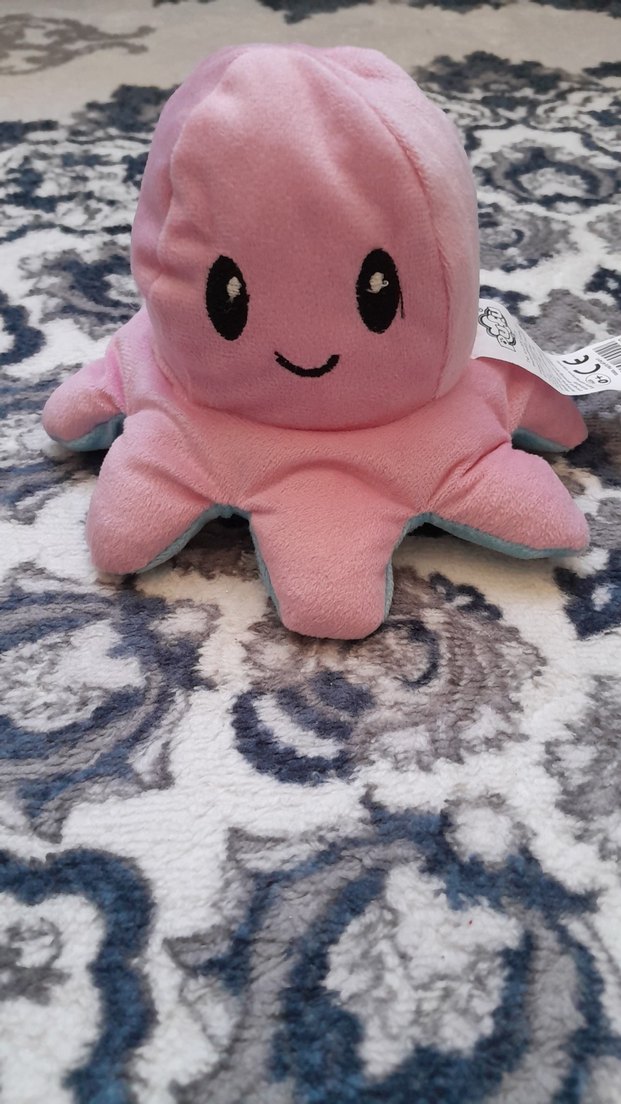 Yumuşak pembe peluş ahtapot oyuncak, gülen yüzüyle sarılmak için uygun. Pastel rengiyle sevimli bir dokunuş katıyor.