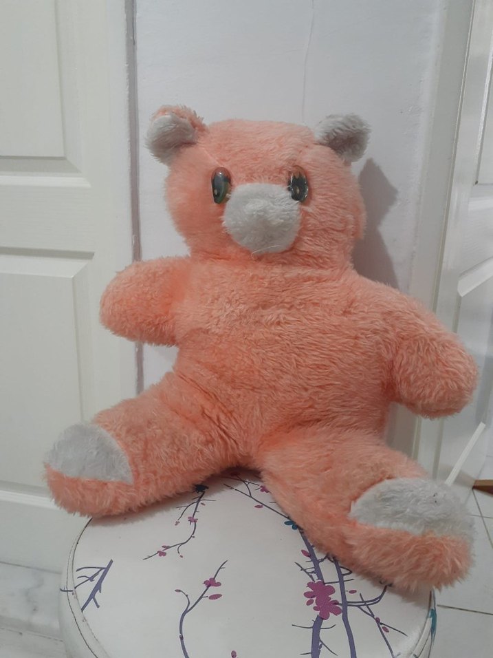 Pastel pembe renkte, yumuşak kumaşlı ve sarılmaya uygun peluş 60 cm ayıcık