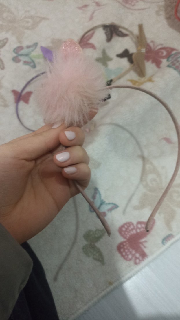 Pembe renkte, peluş detaylı çocuk saç bandı. Pastel tonu ve şık tasarımıyla modaya uygun bir aksesuar.