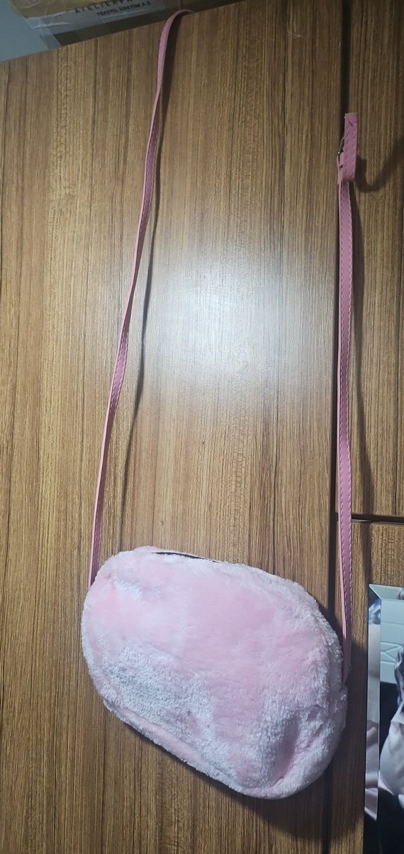Pastel pembe renkte, peluş detaylı ve batik desenli, sentetik kumaştan kadın çantası. Sokak stili ve rahat bohem havası ile günlük kullanım için uygun. hiç kullanılmamıştır aynı şekilde çantam olduğu için satıyorum