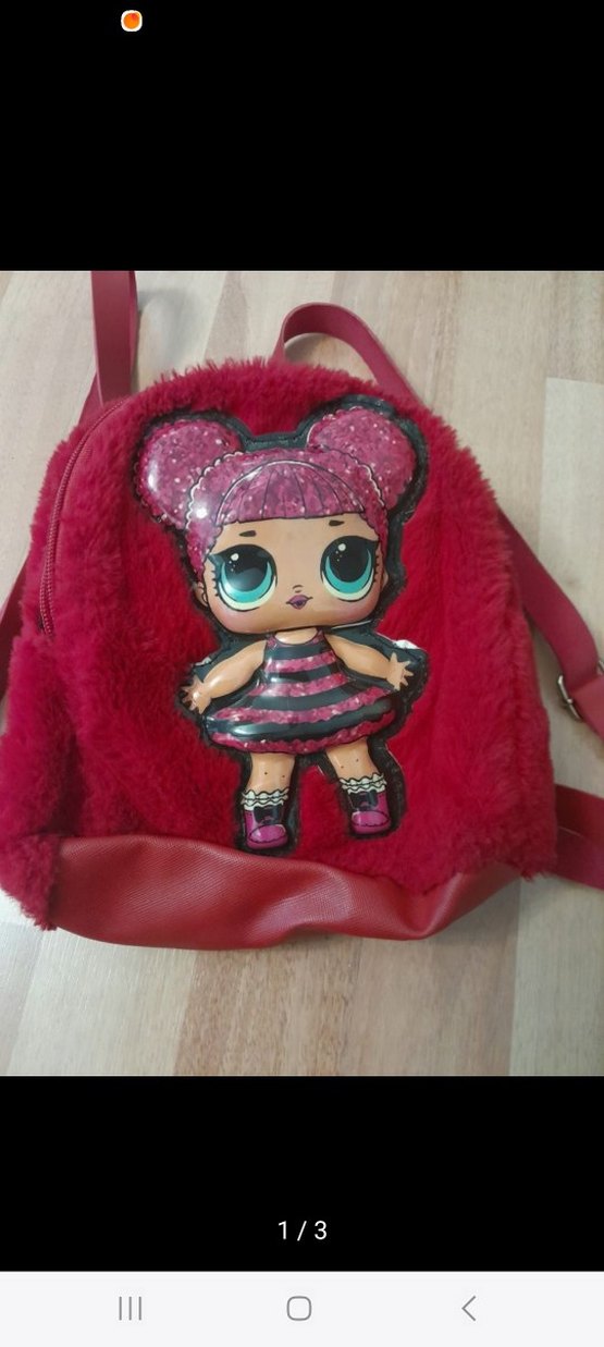 Canlı renklerde pembe peluş detaylı, baskılı pop kültür figürlü kız çantası. Ayarlanabilir askıları ile rahat kullanım sağlar.