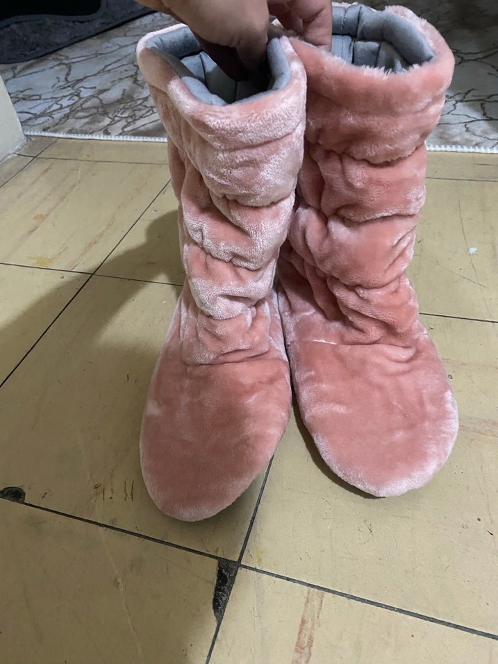 pembe renkli, peluş ve kürklü detaylara sahip ev terliği. Hiç giyilmedi. 36-37 numaraya uygun