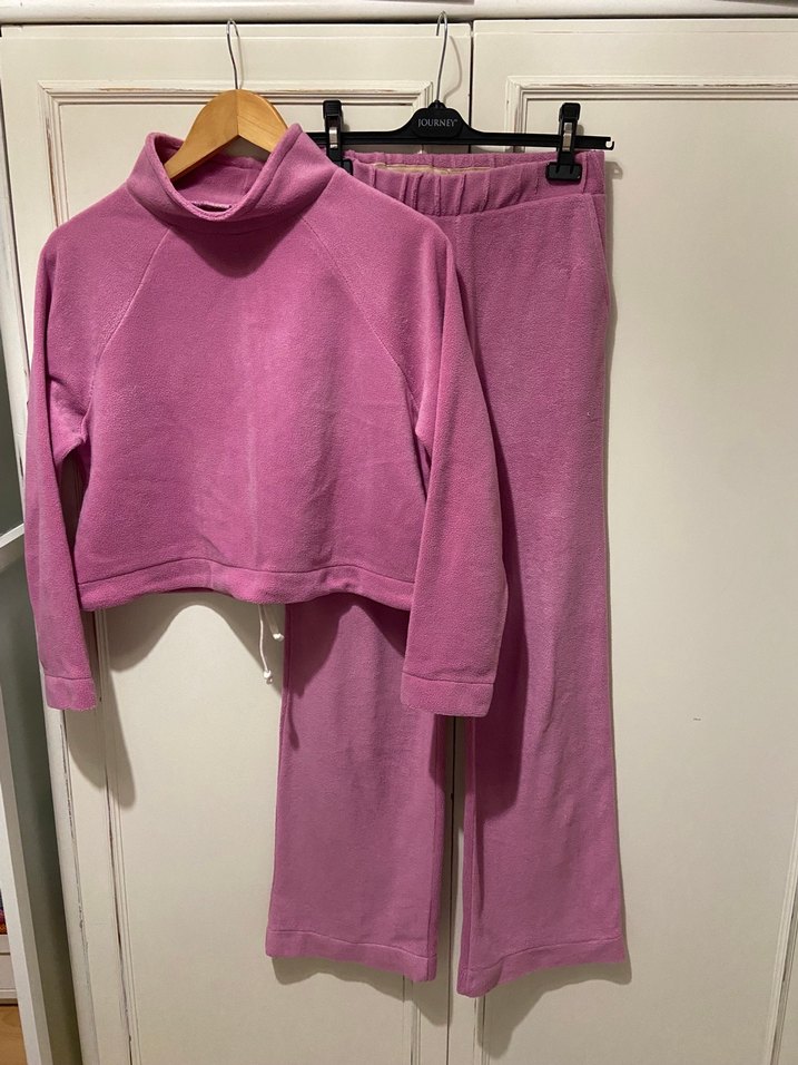 Yumuşak ve sıcak kumaştan, mor / pembe renkte, yüksek yakalı ve uzun kollu rahat kesim kadın eşofman takımı. ✨ 34 beden Altı astarlı Üstün beli iple büzülebiliyor Defosu yok BUTİK ÜRÜNÜ TRENDYOLMİLLA DEĞİl