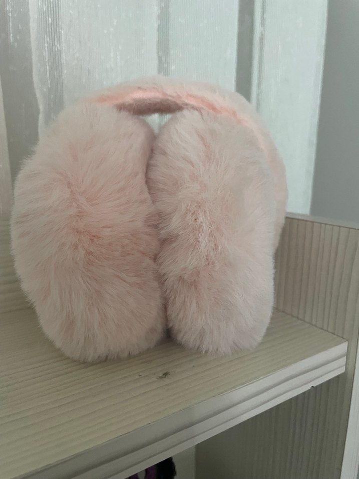 Yumuşak ve rahat dokulu pembe pastel renkli peluş kadın kulaklık, konfor ve sıcaklık sağlar.