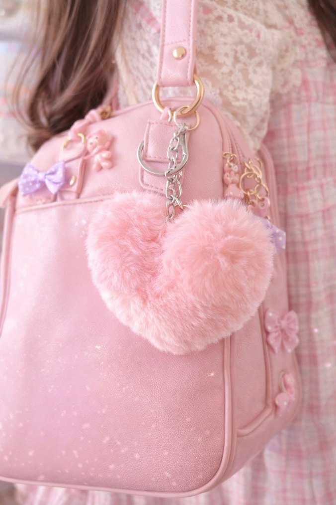 Pembe Pelüş Kalp Çanta Aksesuarı