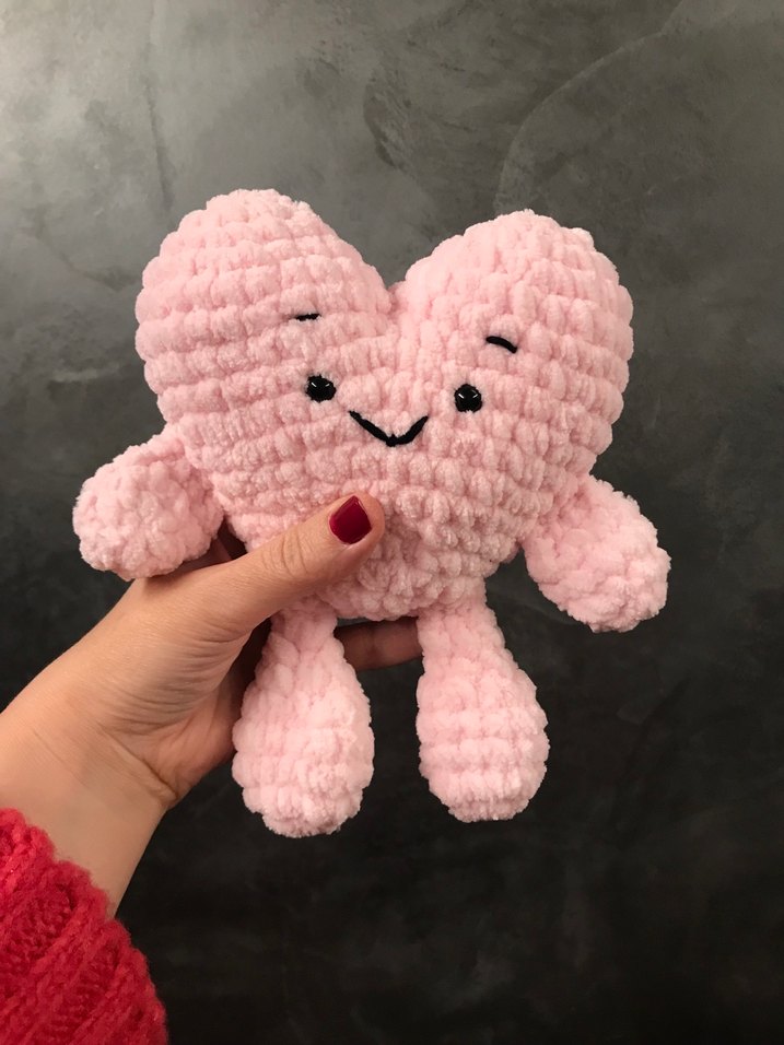 Satın almak İçin mesaj yazıp özel ilan açtırınız Yumuşak ve pastel pembe renkte, sevimli yüz detaylı kalp şeklinde peluş oyuncak. Dört uzuvlu ve sarılmak için uygun.