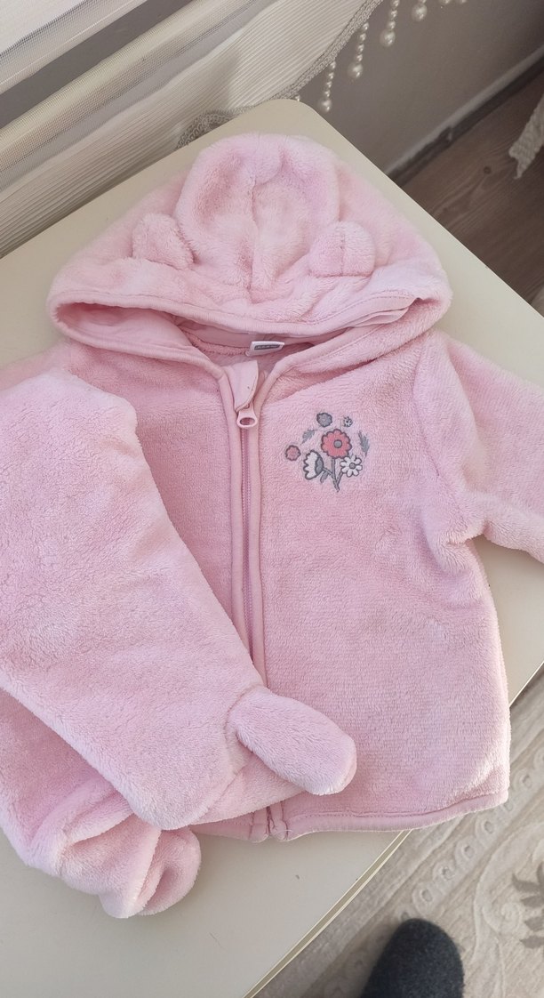 3/6ay peluş bebek takımı.Cok sayılı kullanılmıştır.Sicacik tutar.