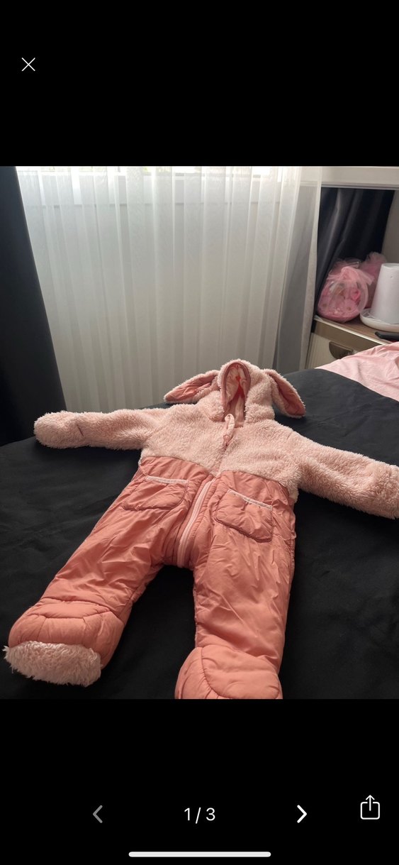 Peluş detaylı kapüşonlu, pastel pembe renkli, desensiz bebek tulumu. Yumuşak ve sıcak tutan kumaşa sahiptir. 0-6 ay çok kısa süre kullanıldı sorunsuz