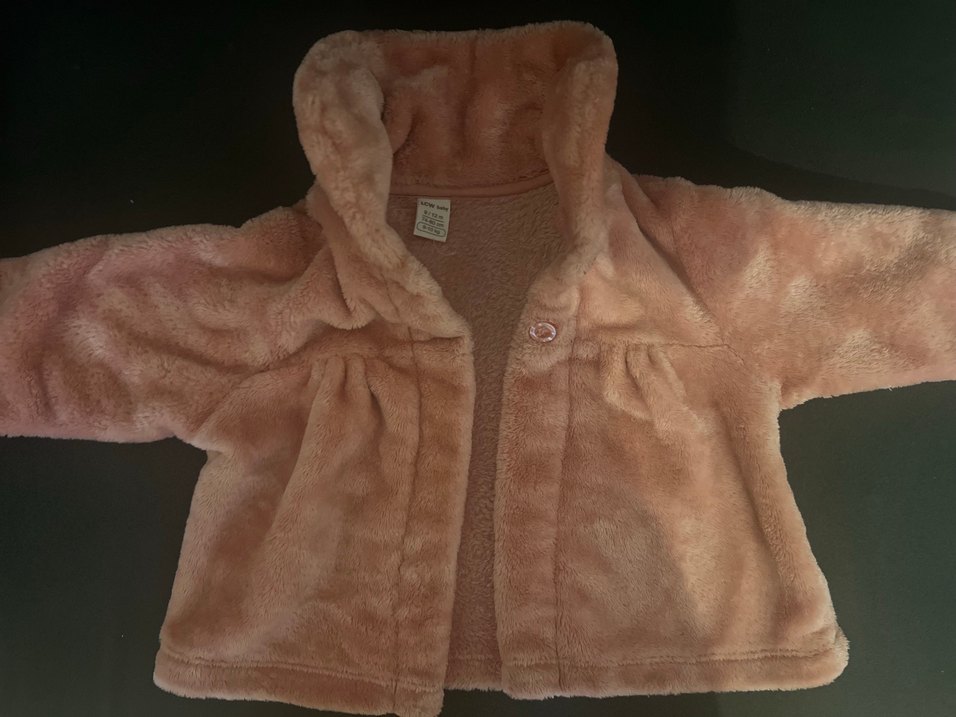 Bej renkte, yumuşak peluş detaylı, çentikli yaka ve bol kesim kız çocuk ceketi. Az kullanıldı yeni gibi ve yumuşacık.