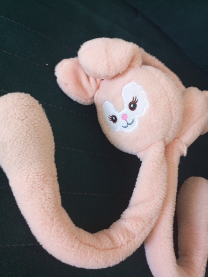 Yumuşak dokulu, pastel pembe renkte, sevimli tavşan şeklinde peluş kulaklıklar taç toka . Nakışlı yüz detayları ve uzun kulakları vardır.