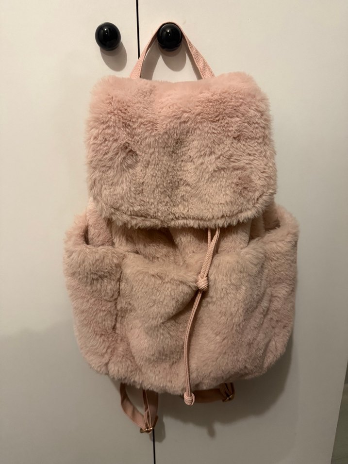 Peluş detaylı, yumuşak ve rahat pembe sırt çantası. Primark Hollanda’dan aldım sadece iki kez kullandım