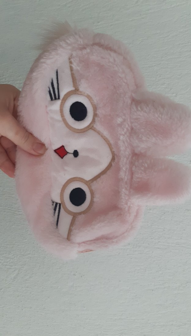 Yumuşak ve tüylü kumaştan yapılmış, nakışlı detaylı sevimli tavşan yüzü desenli pembe peluş kalemlik