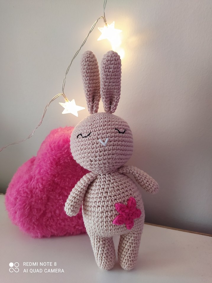 Uzun kulaklı, pastel pembe renkte, küçük yıldız detaylı peluş tavşan oyuncak. Yumuşak ve rahat, sarılmak için uygun. Ürün boyu 23cm Coton iple Örülmüştür Toplu alımlar için lütfen mesaj atınız #amigurumi #süs #aksesuar #örgü #tavşan #pembe