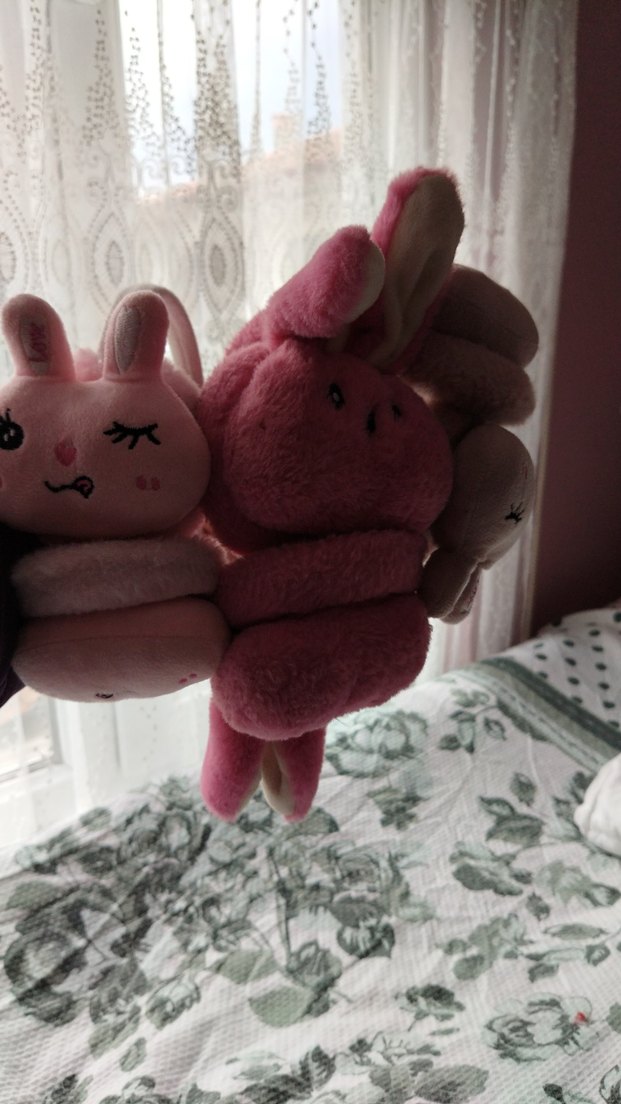 Nakışlı yüz detaylarına sahip yumuşak pastel pembe tavşan şeklinde peluş oyuncak. Rahat dokusu ve sevimli tasarımıyla dikkat çeker.