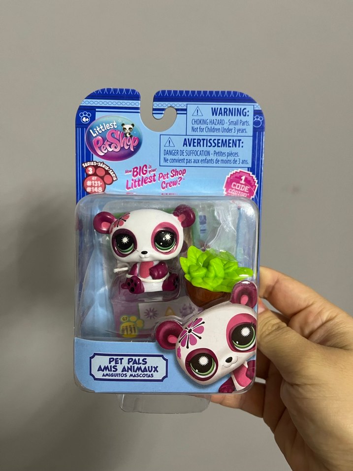 Littlest Pet Shop pembe Pet Pals aksiyon figürü, büyük gözlü küçük pandayı ve yeşil bitki aksesuarını içerir. 3 yaş üstü çocuklar için uygundur.
