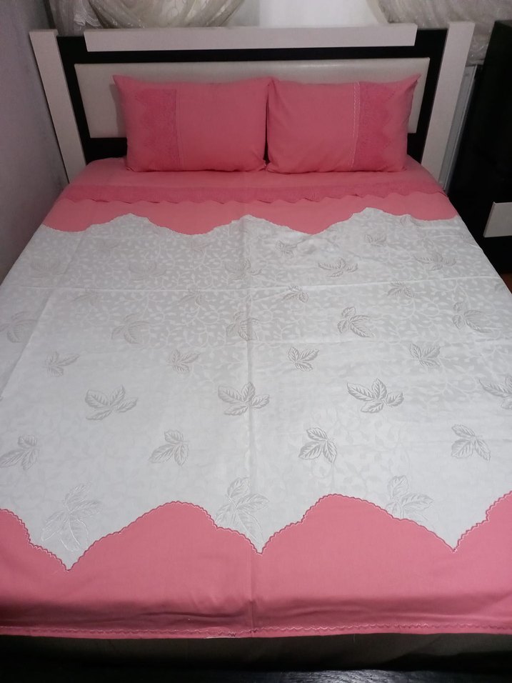 çift kişilik pembe pike, yatak örtüsü, 2 yastık kılıflarıyla birlikte gelir, yatak odanıza zarif bir dokunuş katar. ️