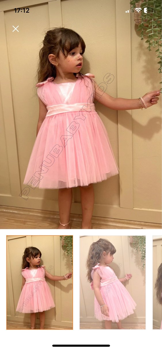 Pembe Pilili Askılı Kız Çocuk Elbisesi