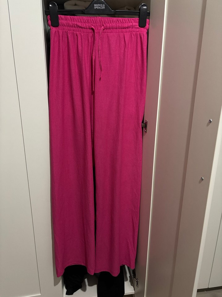 Uzun, bol kesim ve pilili pembe kadın pantolon. Hiç kullanılmadı