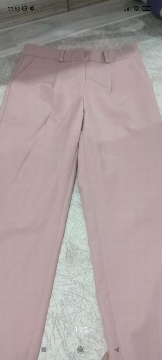 Pembe midi boy, pilili ve regular fit kadın kumaş pantolon. İpeksi dokusuyla ofis için minimal ve normcore tarzda şık bir seçim.
